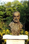 10月16日,為紀念圓明園罹劫150周年,圓明園舉行雨果雕像揭幕儀式,青銅質(zhì)地的雨果半身雕像正式與游人見面。 新華社發(fā)