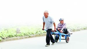 忠州陳大爺每天推著癱瘓老伴步行16公里去按摩