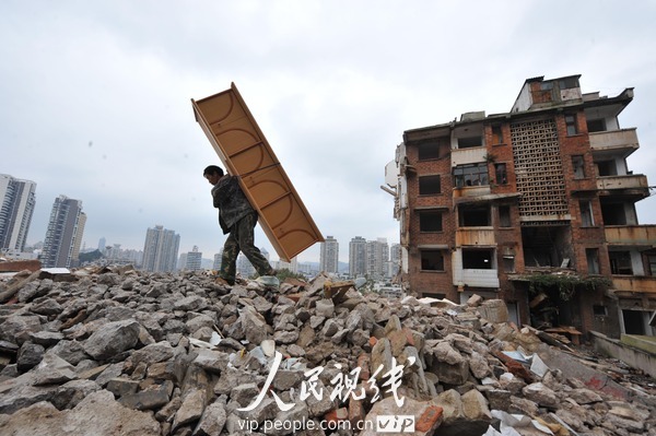 2010年10月28日,貴陽市一市民在搬運家具。貴陽市預計300億實施改造該市彭家灣居民區(qū),開辟了歷史以來最大規(guī)模的拆遷,成千上萬戶居民暫離故居,忙碌搬家。(吳東俊/人民視線)