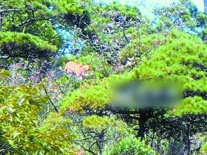 10月15日,安徽籍游客鮑曙光一行在西海岸一側(cè)100多米的山林陡坡上發(fā)現(xiàn)一只金黃色動物的蹤影。