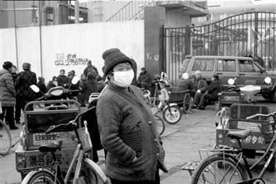 恒聚公司有南北兩扇大門,村民將數(shù)輛自行車、三輪車橫在兩扇大門前,恒聚公司被徹底圍困。在現(xiàn)場的數(shù)十名村民中多數(shù)都已經(jīng)上了年紀(jì),一些村民準(zhǔn)備了桌子、板凳,以便休息。為防止“吸毒”,一些村民還戴上了口罩。