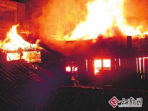 起火點(diǎn)位于騰沖商業(yè)區(qū)主大街內(nèi),四周毗鄰建筑密集,且此時正處深夜,大量居民還未逃離現(xiàn)場,濃煙滾滾的大火已將整個四合院吞噬,且火勢已逐步向周邊住宅樓蔓延。