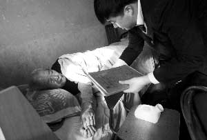 由于原告朱海洋因身體情況不能出庭,昨日上午,主審法官趕到老人家探望,并了解起訴書的內(nèi)容。攝影/記者 王貴彬
