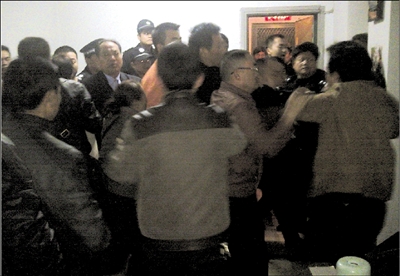 現(xiàn)場(chǎng)視頻中,警方與死者家屬發(fā)生爭(zhēng)執(zhí)。視頻截圖