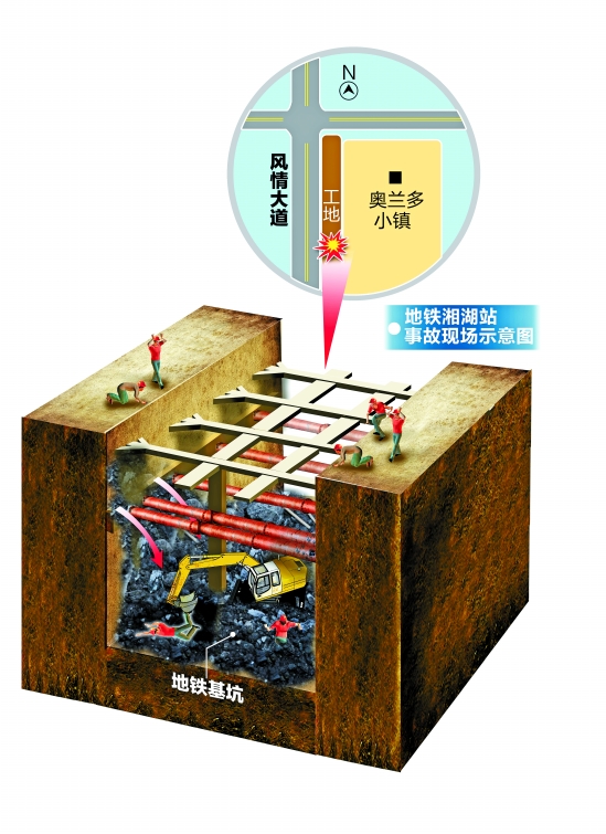 昨天中午12點(diǎn)30分左右,杭州地鐵1號(hào)線湘湖站北三2基坑。