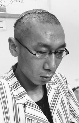 11月25日上午,在解放軍第二六四醫(yī)院燒傷整形科重癥病房內(nèi),29歲的孫志吉正在幫助特重度燒傷的女朋友于秀芳做治療。于秀芳22歲,她和男朋友孫志吉已相處3年,都是朔州人。今年9月24日,因家中失火,她全身65%的皮膚被燒傷,屬特重度燒傷。事情發(fā)生后,孫志吉始終陪在女友身邊,不離不棄,每當女友失去治療信心時,他就對女友進行鼓勵,為給女友植皮,他還獻出了自己的頭皮。