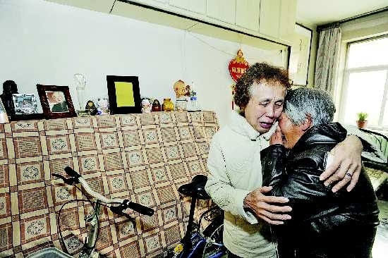 12月2日上午,在山崎宏家中,他的女兒山雍蘊(yùn)(左)和親人相擁而泣。記者 王媛 攝