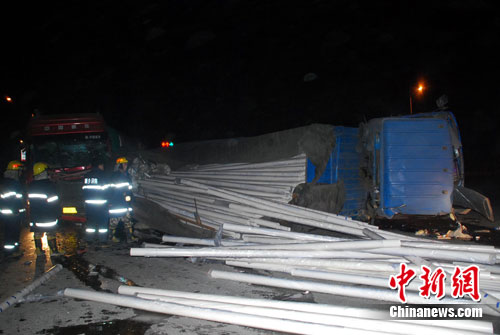 據知情人士介紹,兩車司機不同程度受傷,已被送往醫(yī)院救治,但一名貨車副駕駛由于轉彎避車時的巨大慣性被甩出車外,被散落的塑膠水管掩埋,生死不明,情況危急。