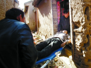 7日,遇難少年楊少朋的遺體被家人抬回家。曹福川 攝