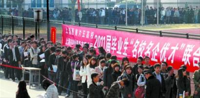 上海高校校園招聘進入高峰。圖為“名校名企優(yōu)才”聯(lián)合招聘會在東華大學(xué)舉行。
