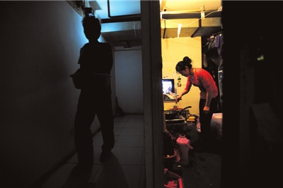 22歲的小石在木樨園附近的百榮世貿(mào)商城做導(dǎo)購(gòu)員,未婚夫小郭是運(yùn)輸公司的司機(jī),兩人住在商城兩公里外一小區(qū)的一間地下室。雖然是一個(gè)僅有8平方米、不帶廚衛(wèi)的“開間”,但月租才450元,離工作地點(diǎn)不遠(yuǎn),對(duì)付一下,家的功能還算完整。