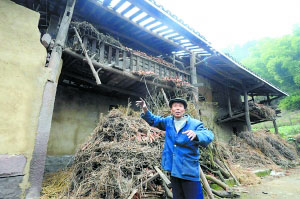 昨日,記者趕到大灣鎮(zhèn)空塘村6社彭友春家時(shí),屋外堆滿了稻草,屋頂還空著少許瓦位。67歲的彭友貴在堂弟彭友春家門前徘徊,由于房門已被警方鎖住,他無(wú)法入內(nèi)。前日中午那場(chǎng)3死3傷的慘劇就發(fā)生在這棟房?jī)?nèi)。