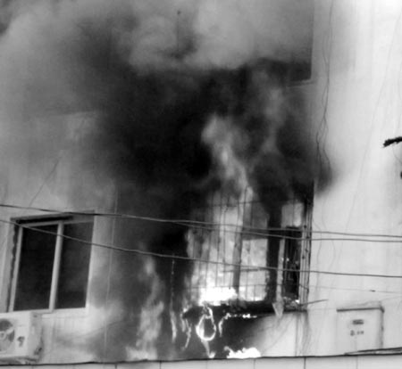 僅幾分鐘的工夫,火苗從窗戶躥出,窗戶也燃燒起來(lái)。