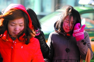 因低溫,王府井等多處旅游點客流量降低。前天,王府井附近的游客在寒風(fēng)中行走。本報記者 周曉東 攝