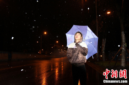 據(jù)氣象資料記錄顯示,1991年12月,重慶主城區(qū)罕見大范圍飄雪。此后19年間,重慶主城冬季雖氣溫偏低,但除縉云山外的其他地方幾乎無雪花降臨。2008年1月27日,重慶主城境內(nèi)的南山曾飄落過雨夾雪,但因時間太短,并沒有給市民留下深刻印象!(連肖 劉函冉)