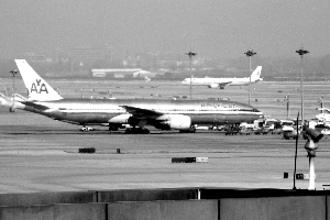昨日上午11點(diǎn)半左右,出現(xiàn)故障返航的美國(guó)航空公司波音777客機(jī),停在了首都機(jī)場(chǎng)T3航站樓東側(cè)的機(jī)坪上。威猛 攝