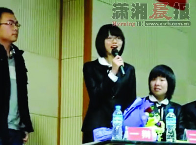 較之現(xiàn)場,網(wǎng)上反映更為熱烈。網(wǎng)友“l(fā)oveinshare”于18日將這段視頻上傳至優(yōu)酷,截至19日18點,短短一天時間,視頻已被播放近101萬次。湖南師大等全國各所高校的同學(xué)紛紛留言“發(fā)來賀電”。