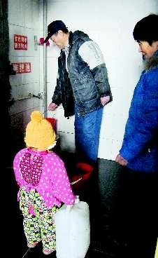“沒辦法,家里沒水,只能去輕紡城一樓的衛(wèi)生間里打水!87歲的耿老太顫巍巍地提著裝滿水的水桶,無奈地說道。居民向記者介紹,健民路宿舍共有136戶居民,今年供暖開始后,居民們突然發(fā)現(xiàn),家里的自來水變成了熱水,最高溫能達(dá)到50℃,一周前干脆停水了。