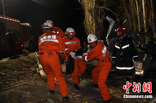 根據(jù)現(xiàn)場情況,消防人員一部對車內(nèi)被困人員進行心理安撫,通過對話,隨時掌握被困者的情況,以便及時應(yīng)對;另外破拆救援小組立即利用破拆器材,對嚴(yán)重變形的車體進行破拆,盡快就出被困人員。救援人員首先利用液壓擴張器將凹凸部分撐開,隨后利用金屬切割鋸對車體進行破拆。經(jīng)過消防官兵的努力,駕駛室被困的4名傷者被救出,并及時被120急救車送往醫(yī)院進行搶救。