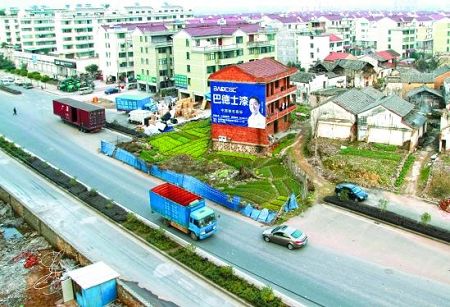 有村民說,姚步青其實(shí)是一個聰明人。那幢紅色磚瓦房的墻壁上有一副巨大的廣告,老姚收費(fèi)1000塊一年!皬V告商看中的就是這房子在馬路中間,顯眼!