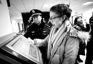 12月23日,西城分局內(nèi),一位女事主通過立案公開系統(tǒng),查詢案件進展情況。本報記者 趙亢 攝