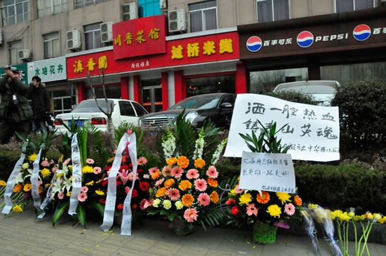 1月4日,泰安市發(fā)生了震驚全國的“1.04”持槍殺人案,2名民警和一名協(xié)勤在抓捕犯罪嫌疑人過程中壯烈犧牲。今天,泰安各界群眾自發(fā)來到案發(fā)現(xiàn)場,悼念犧牲的公安民警和協(xié)勤人員。