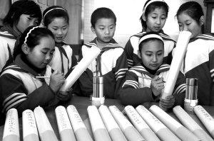 棗莊市紅旗小學的學生在親手制作的香煙模型上書寫吸煙危害警示語,將其作為禮物送給家長,以勸導家長戒煙。新華社發(fā)