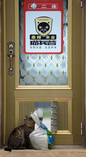 “不是所有的貓都這么聽話,有的就需要特殊對待。”尹純柱指著趴在不遠(yuǎn)處正在曬太陽的一只白色的短尾巴白貓和一只小黑貓說,“它倆是偵查貓,別看好像懶洋洋的,其實(shí)特別能抓老鼠!眰刹熵埡脱策壺埖墓ぷ鲄^(qū)域不一樣,它們要對付的是那些已經(jīng)溜進(jìn)糧庫,隨時(shí)準(zhǔn)備向糧倉發(fā)動攻擊的老鼠們。小黑貓似乎也很喜歡這項(xiàng)新工作,它總在老鼠經(jīng)常出沒的地方到處聞聞看看,還時(shí)不時(shí)地“喵喵”叫幾聲,老鼠們就算是沒有被趕出來,估計(jì)也會嚇個(gè)半死。