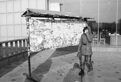 17日,在吉林師范大學(xué)圖書館附近的一處公告欄內(nèi),張貼著“尋替考”廣告。新華社記者 周立權(quán)攝
