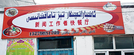 “來吃飯的大多數(shù)顧客是新聞工作者!崩习灏⒉欢颊f,因為餐館離新疆電視臺很近,所以餐廳的名字叫“新聞工作者快餐廳”。