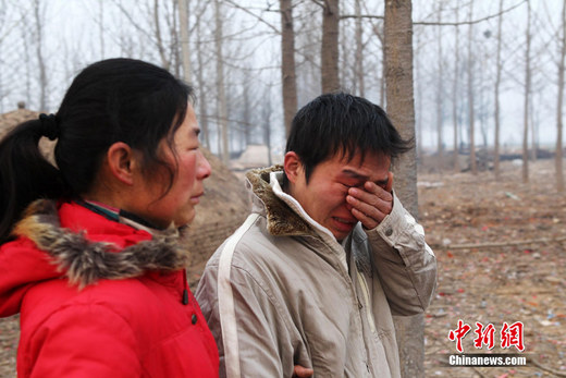 1月20日凌晨,河南漯河豫田花炮廠員工家屬在爆炸現(xiàn)場(chǎng)看到親人的物品聲淚俱下。19日下午16時(shí)50分許,河南漯河市郾城區(qū)李集鄉(xiāng)老宮田村的豫田花炮廠發(fā)生爆炸。中新社記者 王中舉 攝