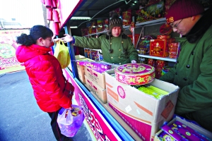工體北門,燕龍花炮銷售點(diǎn)正在銷售花炮。記者 王貴彬 攝