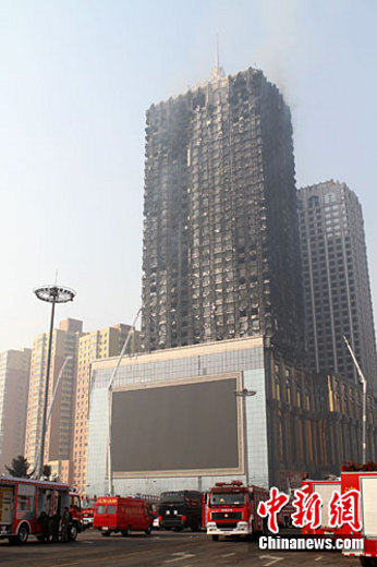 為救火,沈陽(yáng)周邊鐵嶺、本溪、撫順等城市消防車緊急馳援,但由于著火的B座樓高152米,主樓A座更是高達(dá)219米,消防云梯高壓水槍很難及時(shí)有效控制火情。
