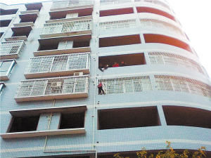 “太嚇人了,我都為她捏一把汗!”居民李長芬當(dāng)天在事發(fā)居民樓對面的親戚家吃飯,小女孩爬出窗外時,李長芬剛巧看見。“剛開始,我還以為是小偷下去偷東西!崩铋L芬說,小女孩先是站在5樓窗臺上,腰間系了繩,在兩個大人的幫助下,腳先踩在防盜網(wǎng)上,然后慢慢地往下爬,最后打開防盜網(wǎng)上的鐵窗進了屋。