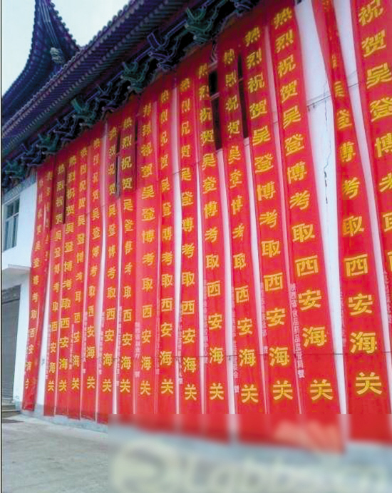 “史上最牛祝賀陣容驚現(xiàn)蒼南錢庫(kù)鎮(zhèn)前吳村,學(xué)子考取西安海關(guān),陜西省數(shù)十省廳級(jí)部門道賀”,前天,浙江溫州本地好幾個(gè)網(wǎng)絡(luò)論壇上, 出現(xiàn)了上述字眼的帖子,一時(shí)引來(lái)圍觀無(wú)數(shù)。