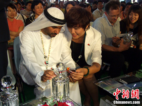 上海世博會上,阿聯(lián)酋國家館代表對“張家界空氣瓶”特別感興趣。資料圖