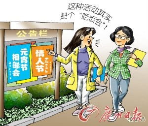 西方情人節(jié)才走,號(hào)稱中國情人節(jié)的“元宵”又接踵而至,一個(gè)星期連續(xù)經(jīng)歷兩個(gè)“情人節(jié)”的洗禮,淡定的寂寞的心又變得躁動(dòng)——“剩斗士”們想找一個(gè)人相伴而過。或許正是看中雙節(jié)過后單身男女內(nèi)心的不安,形形色色的相睇活動(dòng)又“活躍”起來。不過對于有過三次參加相睇活動(dòng)經(jīng)歷的網(wǎng)友“武松打虎”而言,靠相睇尋真愛是“浮云”,他甚至直言有的相睇活動(dòng)只是“吃飯會(huì)”,還不如上網(wǎng)發(fā)帖征女友來得“快狠準(zhǔn)”……