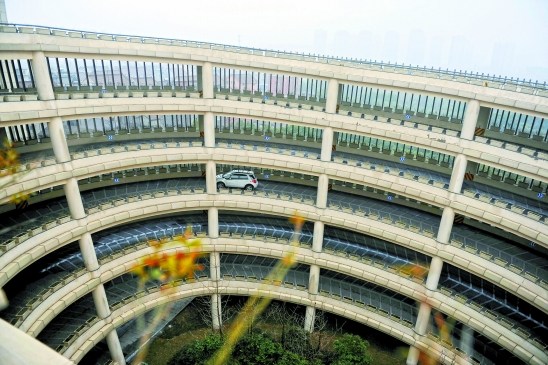 這里還有個(gè)小笑話,前段時(shí)間下雪路滑,有位車主將車子開(kāi)到環(huán)形通道一半時(shí)熄了火,上不能上,下不能下,最后不得不找來(lái)保安一起把車推上了屋頂停車場(chǎng)。