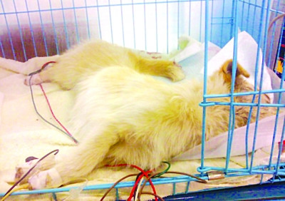 南京女孩“嘿嘿麻麻”面對此景,開始懇求醫(yī)生盡力救治,被感動后的醫(yī)生最后答應(yīng)先治療3天時間,然后就要看這條小狗的造化了。