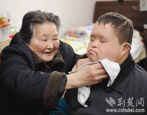 太婆帶著46歲的智障兒住進(jìn)福利院,母子相互溫暖照料整整三年。這一感人的故事讓許多人流淚。昨日,漢陽(yáng)區(qū)福利院負(fù)責(zé)人向記者表示,將讓母子倆長(zhǎng)期住下去,并幫助八旬老母照顧兒子。
