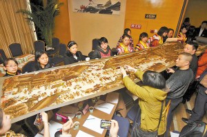昨天上午,沙坪壩,一幅長18.8米、寬1米的精美十字繡作品《清明上河圖》在此進行首展。羅偉 攝