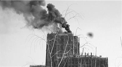 昨天,海淀區(qū)一在建樓冒出濃煙。讀者供圖