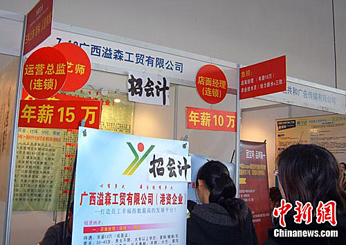 3月12日,2011年春季廣西人才交流大會(huì)在南寧國(guó)際會(huì)展中心舉行。714家用人單位前來(lái)“招兵買馬”,并用各種雷人方式吸引求職者的眼球。