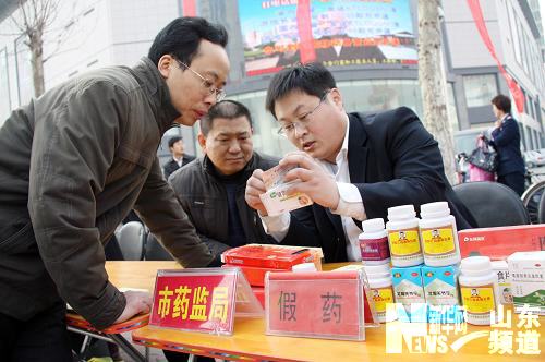 3月13日,山東省聊城市藥監(jiān)部門工作人員在“3·15消費者權(quán)益日”宣傳咨詢服務(wù)活動現(xiàn)場為市民講解假藥的識別方法。