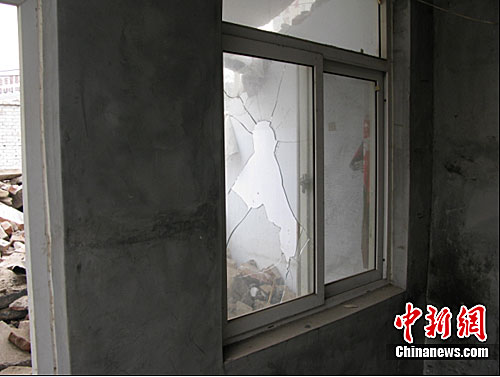 不明身份的人破門而入砸爛的窗戶。張鵬翔 攝