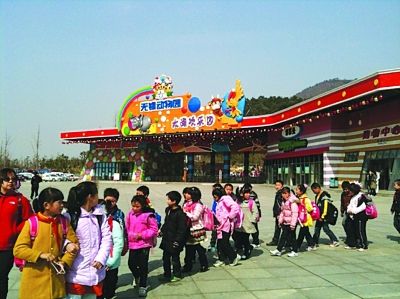 小學(xué)生們排隊(duì)走出動(dòng)物園。