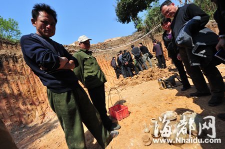 閩侯一村民在拓寬自家后院時,挖出一座古墓,并發(fā)現(xiàn)多件隨葬瓷器,部分趕來看熱鬧的村民竟哄搶隨葬品。昨日中午,省考古隊和閩侯縣博物館工作人員趕去保護(hù)現(xiàn)場,初步斷定墓葬年代為唐朝,并計劃進(jìn)行搶救性發(fā)掘。