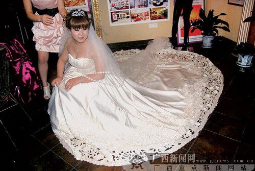 祖籍廣東的彭先生喪妻多年,近年來(lái)在北海經(jīng)營(yíng)一家珍珠公司!皟赡昵,楊小姐答應(yīng)嫁給我之后,我就開始考慮,拿什么來(lái)送給我的愛(ài)人呢?”早年從事美術(shù)設(shè)計(jì)的彭先生決定,制作一件特殊的婚紗。他提出設(shè)想后,委托香港一名設(shè)計(jì)師進(jìn)行設(shè)計(jì)。