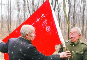 李忠年與李夏春準(zhǔn)備了一面寫著“六十一個(gè)階級(jí)弟兄”的旗幟,以便為來訪者和慰問者講述當(dāng)年的故事。