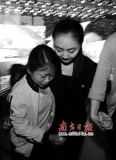 資料圖:2006年4月29日,邢丹和貴州受助女孩晏語輕輕出席廣東紀(jì)念五四運動文藝晚會。王輝 攝